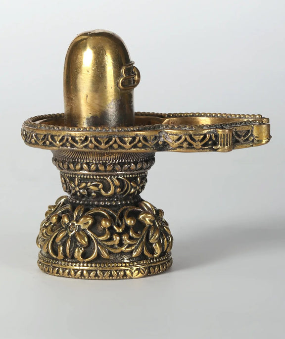Small Brass Shiva Linga Idol Floral Design 2 inches
