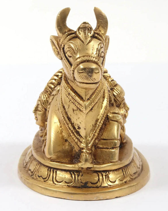 Brass Small Carved Shiva and Parvati on Nandi Statue 4 Inches
