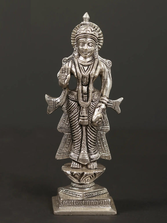 Small Silver Brass Statue of Radha Ji | 5 inches