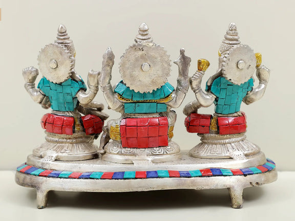 Statue made of brass depicting Lakshmi, Ganesha, and Saraswati 6 inches