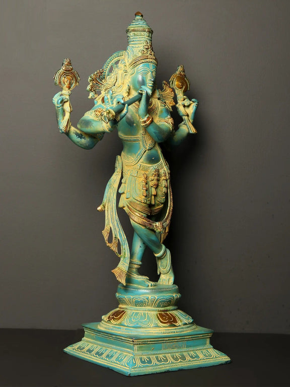 Patina gold Brass Statue of Lord Krishna as Vishnu Avatar 21 Inches