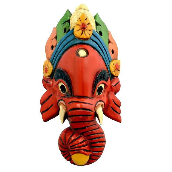 Wooden Beautiful Ganesha Mask (Multicolor, 9 x 5 x 3 Inches)