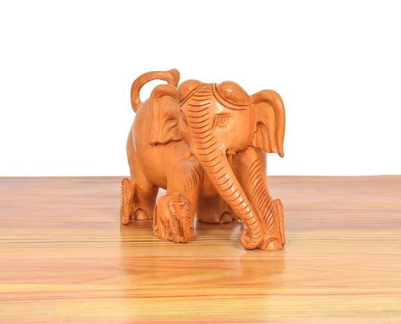 This delightful 4-inch wooden elephant showpiece radiates warmth and charm. Carefully handcrafted, it showcases the natural grain of the wood, making it a meaningful addition to your home or a thoughtful gift filled with love. Its presence brings a gentle, cozy touch to any room.