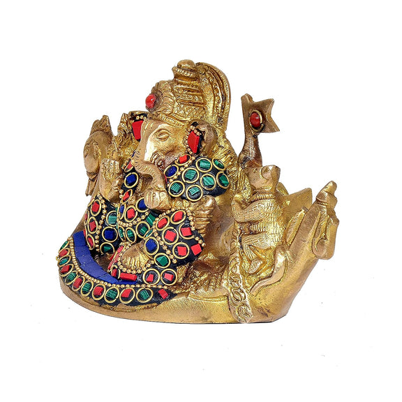 Brass Ganesha Sitting on Swan Palki (Height: 3 Inches)