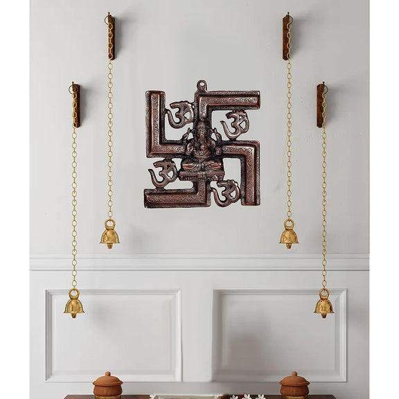 Metal Om Swastik Ganesha Wall Hanging (Height 11 X 11 Inches)