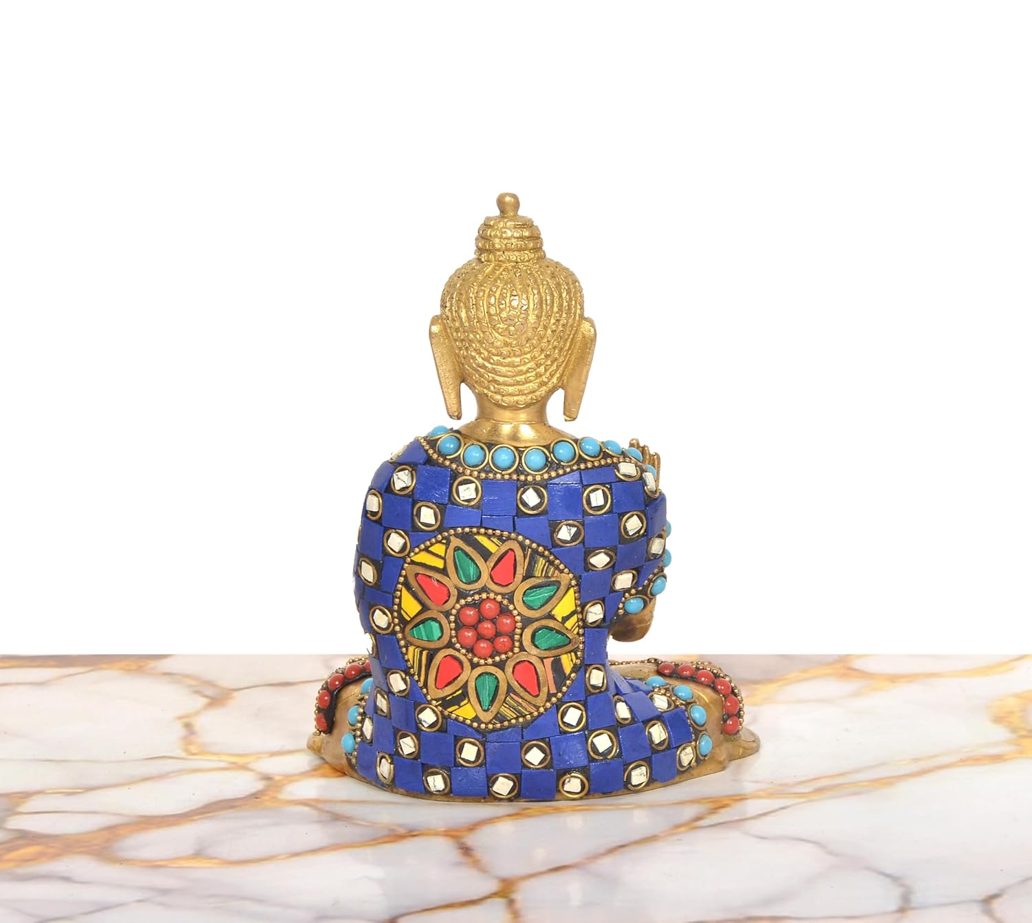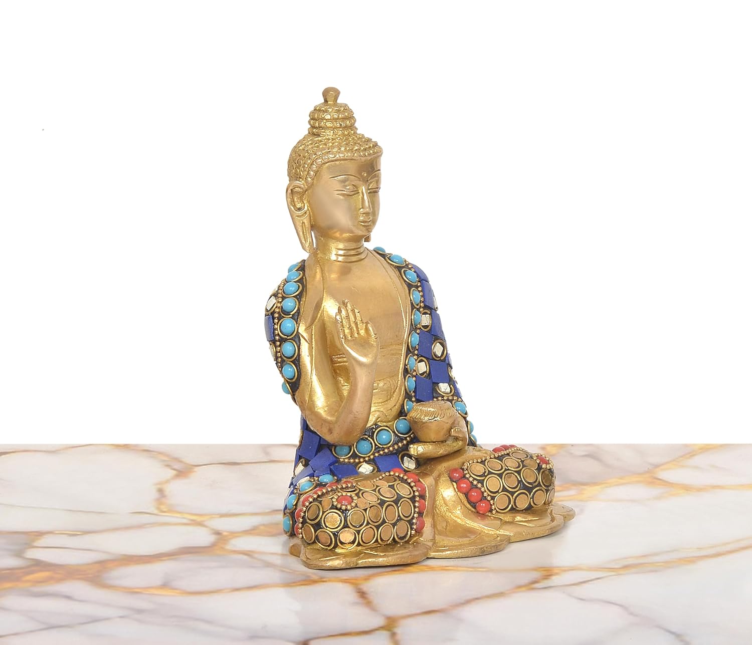 Brass Abhaya Mudra Buddha Idol (Height: 6.5 Inch)
