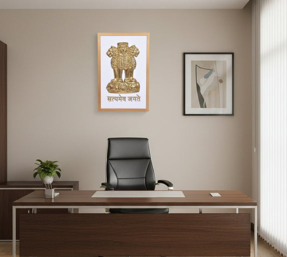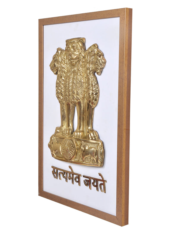 This pure brass wall hanging, with its heavy-duty construction, adorns any home or office with the national emblem of India: the Ashoka Stambh, or Lion Capital of Ashoka. Made to a high level of detail, it is a strong symbol of authority, courage, and truth. Below the majestic four-lion capital is inscribed the national motto, "Satyameva Jayate" (Truth Alone Triumphs), making it a perfect blend of historical significance and spiritual inspiration.