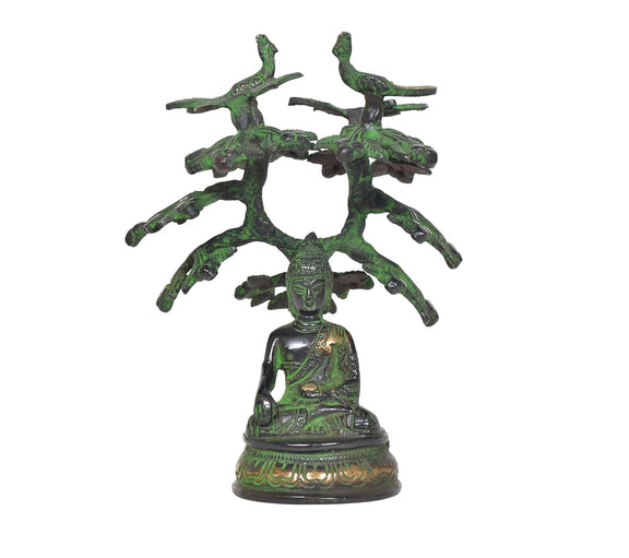 Brass Bhumisparsha Mudra Buddha Tree Idol (Height: 6.5 Inches)