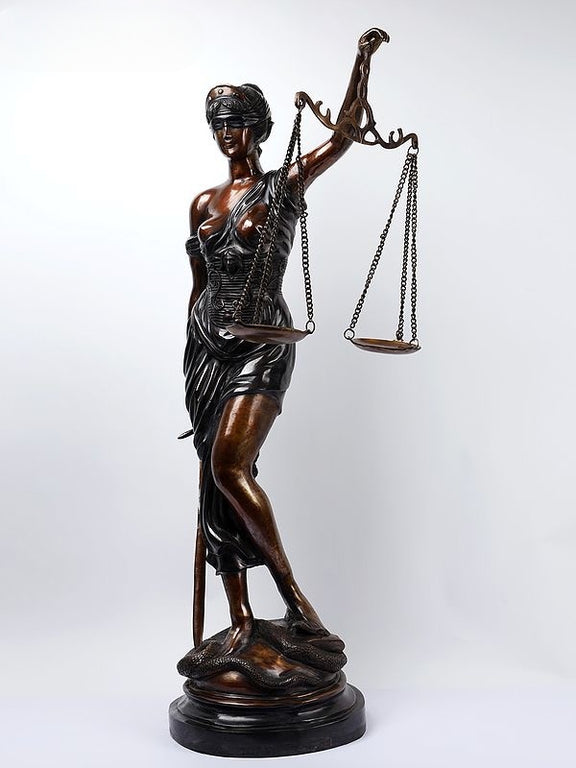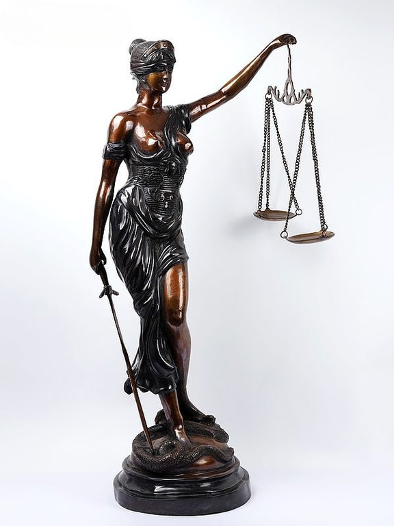 Brass Colossal Justice Lady with Scale and Sword in Hands statue (Height: 46 Inches)