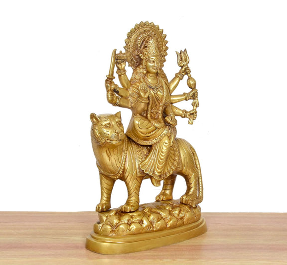 Brass Durga Maa with Tiger Idol (Height : 15 inch)