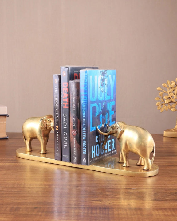 Brass Elephant Book Holder Pair Showpiece (Height :4.5 Inches)