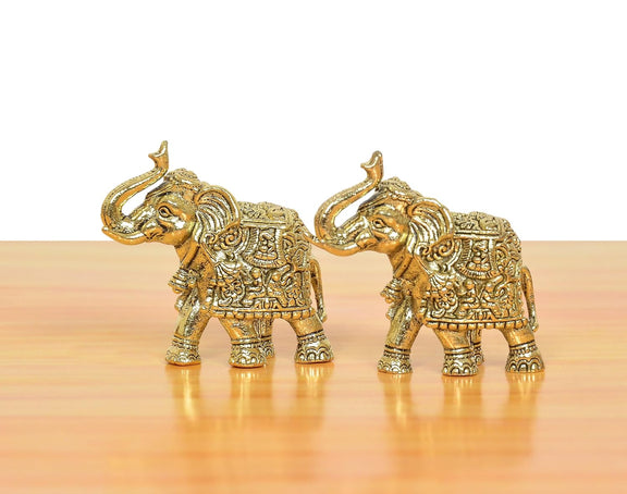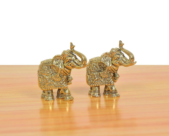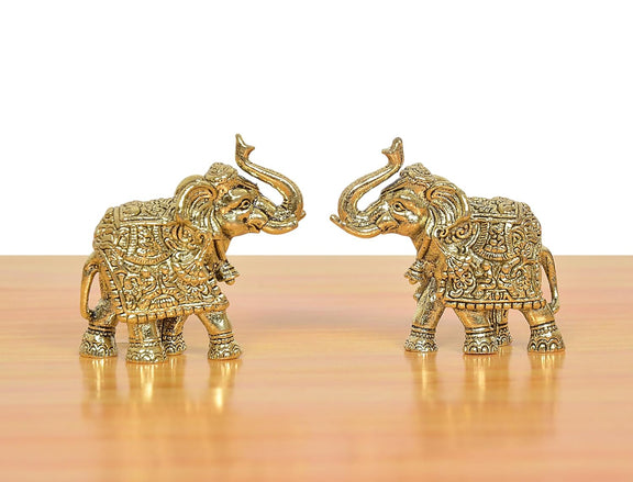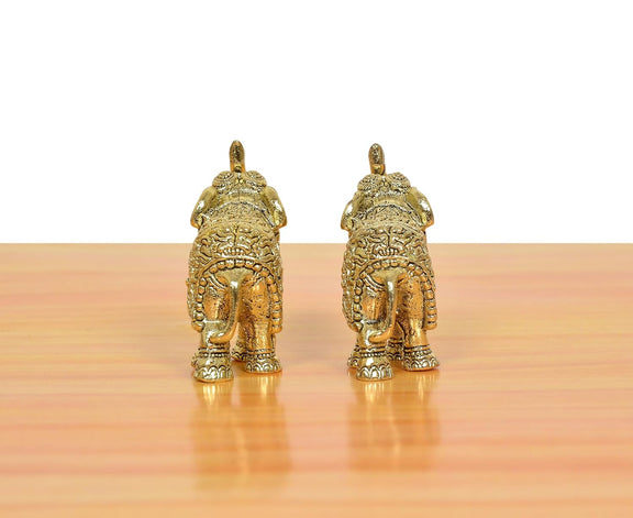 Brass Elephant Figurine| Set of 2 | (Height 3 Cm)