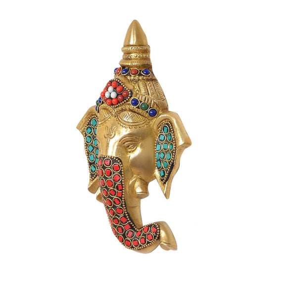 Brass Ganesha Head Wall Hanging (Height 7 Inch)