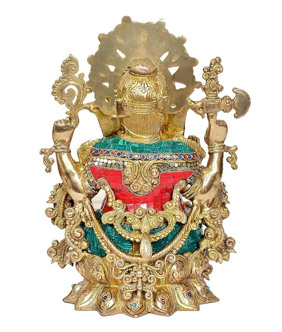 Elevate your decor with this exquisite Brass Ganesha Mangalkari statue. Standing at 16 inches tall, it features intricate details and beautiful stone work, all complemented by a lotus frame. Add a touch of luxury and elegance to your space with this exclusive piece.