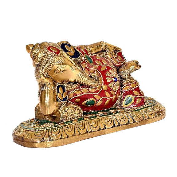 Brass Ganesha laying Statue (Height : 4 Inches)