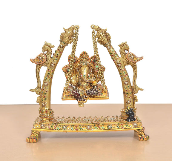 Brass Ganesha Swinging Jhula Idol (Height 10 Inch)