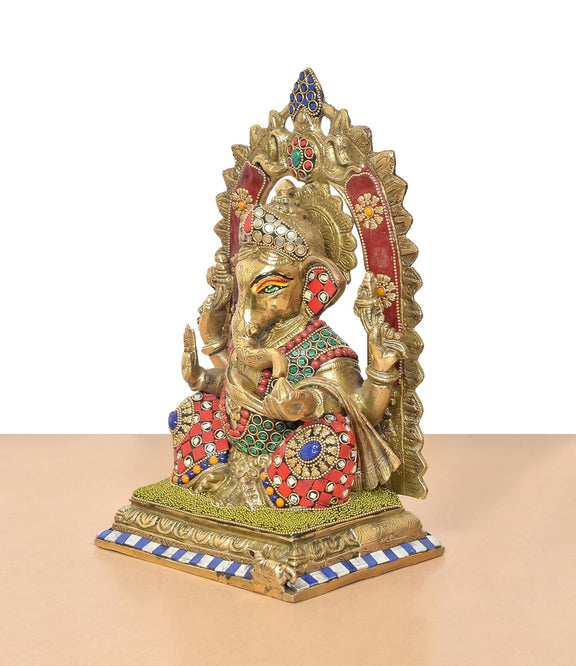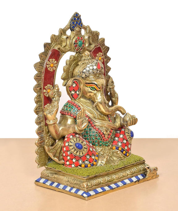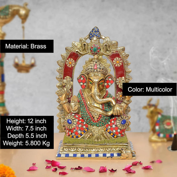 Brass Handcrafted Ganpati Bappa Murti (Height 12 Inch) (Multicolor 1)