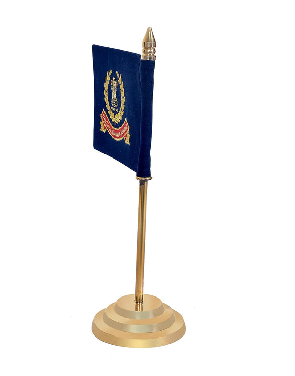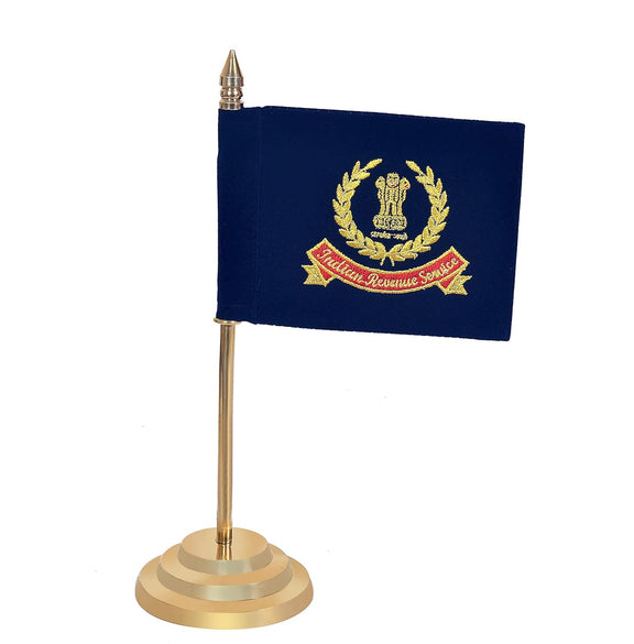 Brass Indian Revenue Service Flag Table Top Desk Flag, Golden Base & Office Decor (Height: 12 inch)