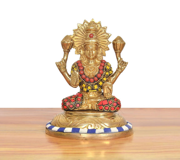 Invite divine blessings into your home with this exquisite brass idol featuring the sacred trinity of Lakshmi, Ganesh, and Saraswati. Standing at 5 inches, this beautifully crafted piece captures the essence of prosperity, wisdom, and auspiciousness in vibrant multicolor detailing. Each deity is intricately rendered, making it a cherished addition to your prayer space, altar, or home décor. Perfect for daily worship or as a meaningful gift, this idol radiates spiritual warmth and cultural richness that honors your devotion.