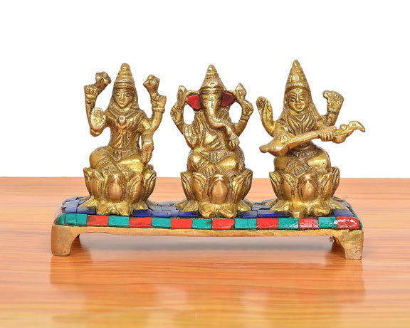 Brass Lakshmi Ganesha Saraswati Idol (Height: 3.5 inch)
