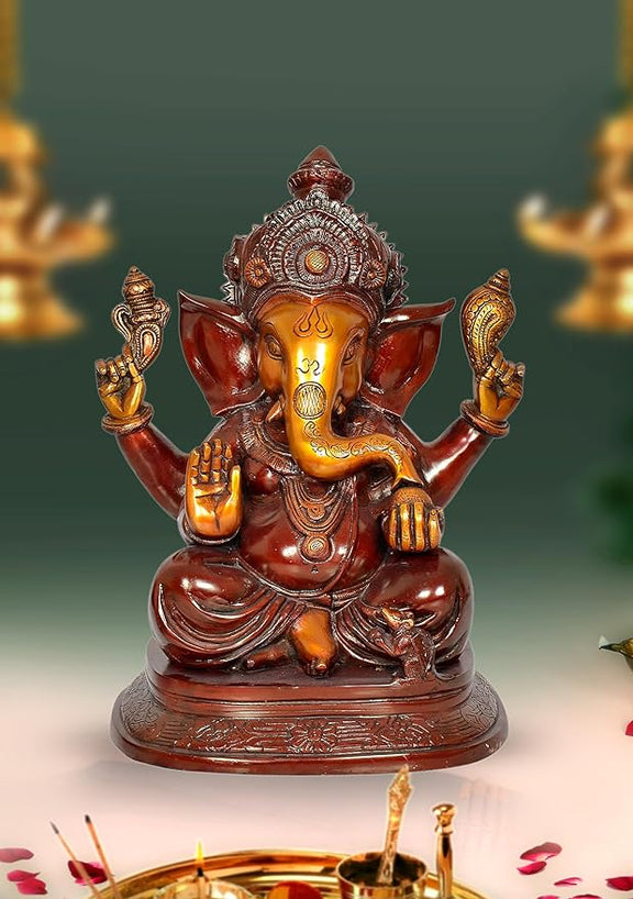 Brass Lord Ganesha Ganpati Idol Vinayak Religious Statue Murti Height 14 Inch