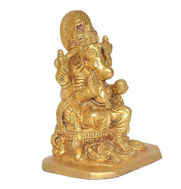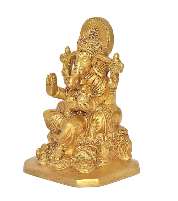 Brass Lord Ganesha Idol Ganesh Statue Decorative Sculpture for Home Decor Office Mandir Pooja Showpiece (Height 6 Inch) (Golden)