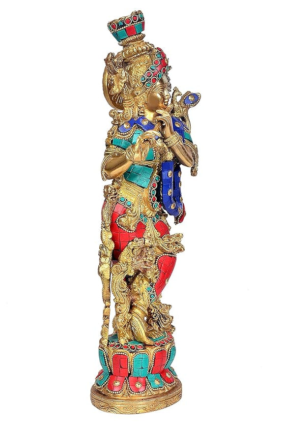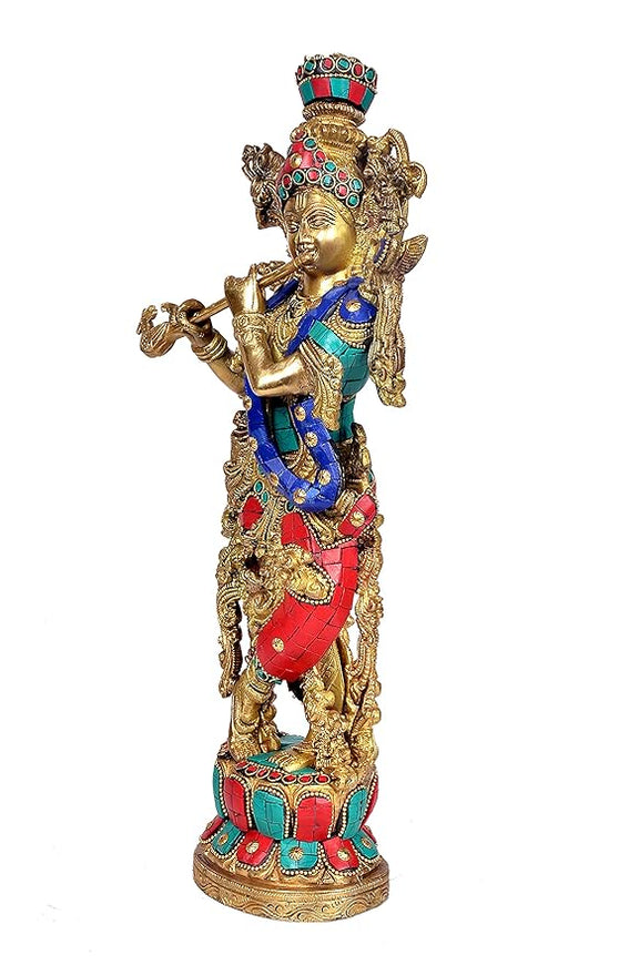Enhance your home or office decor with this exquisite brass Lord Krishna Idol statue. Standing at a height of 14.5 inches, this multicolor sculpture is a decorative showpiece that exudes elegance and sophistication. Its intricate details and impeccable craftsmanship make it a valuable addition to any setting.
