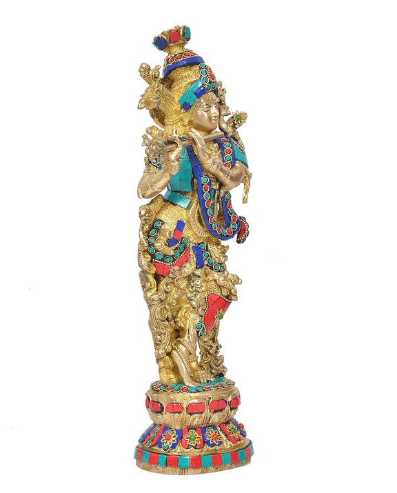 Brass Lord Krishna Sculpture Playing Flute (Height 15 Inches)