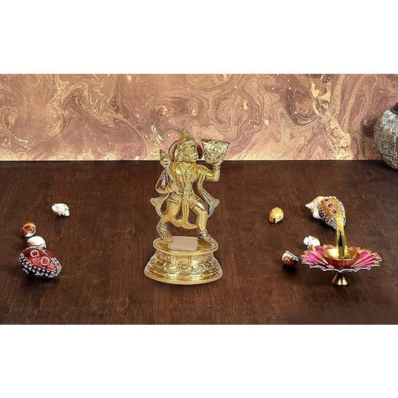 Indulge in the luxury of this exquisite Brass Mahabali Hanuman idol, standing at a majestic height of 4.5 inches. With intricate detailing and a breathtaking design, this idol represents strength, devotion, and blessings. Let it bring positive energy and prosperity to your life.