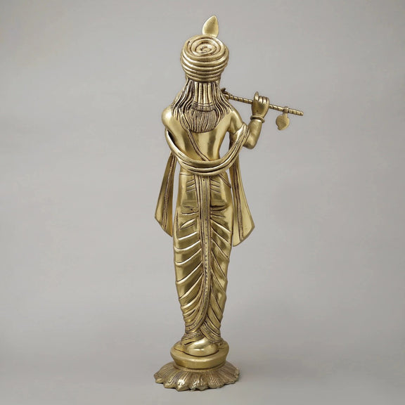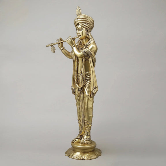 Brass Mathura Krishna Plating Flute Sculpture (Height: 30 Inches)