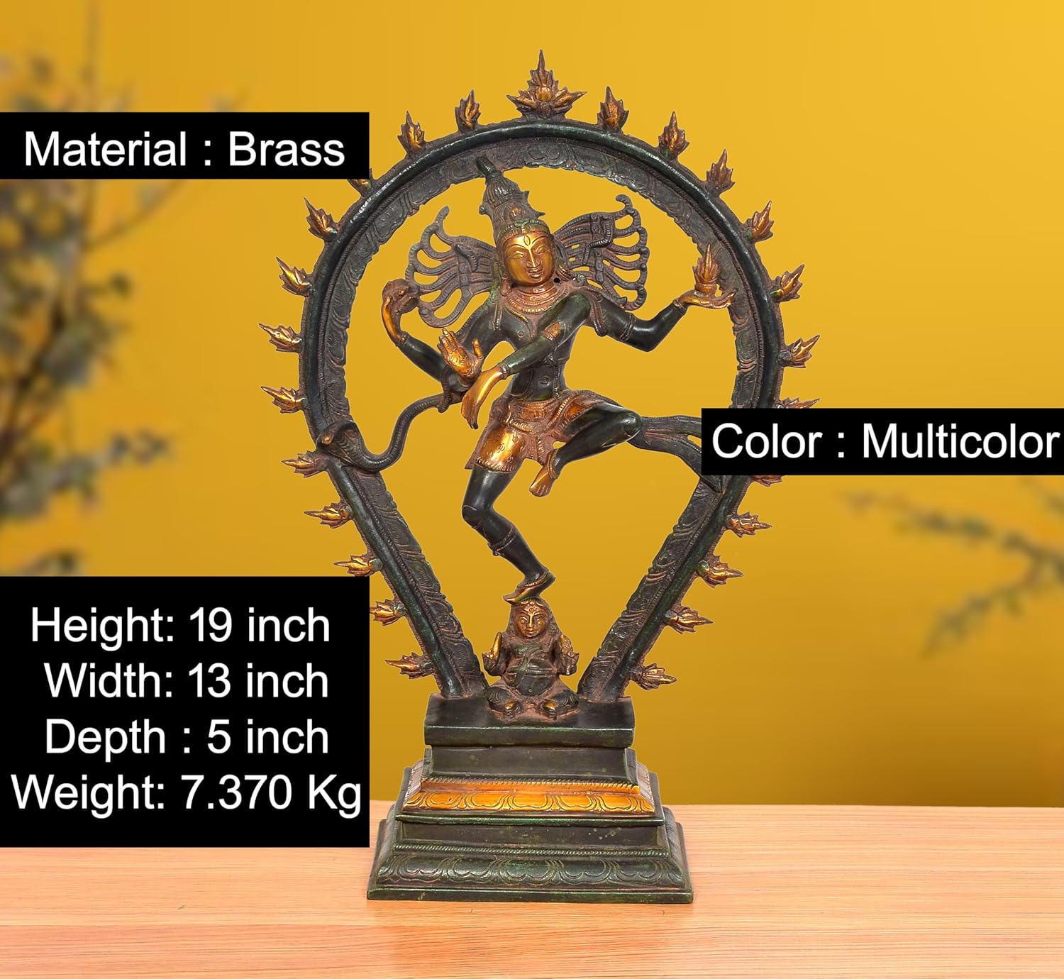 Celebrate divine grace with this Brass Natraj Lord Shiva Dancing Idol, standing 19 inches tall. Crafted with devotion, it captures Shiva’s cosmic dance, symbolizing creation and destruction in perfect harmony. This idol brings a serene, spiritual presence to your home, inspiring peace and love in your surroundings. Ideal for prayer rooms or as a heartfelt gift, it connects you to timeless traditions and the vibrant energy of Lord Shiva.