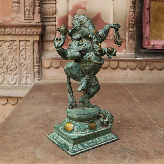 Brass Nritya Ganesh Idol (Height : 17.5 inches)