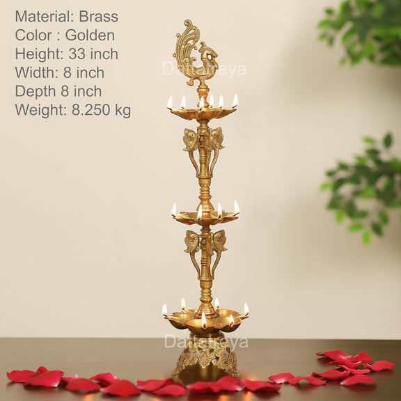Brass Oil Lamp Diya Stand with Peacock Design (Height: 33 Inches)