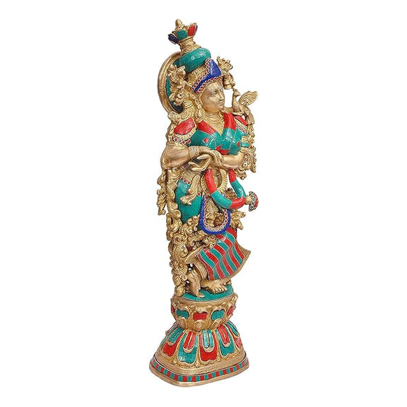 - Â This handmade brass pair of Radha Krishna statues will add a touch of beauty and spirituality to your home. The intricate detailing and vibrant orange color make them a stunning decor piece. The large size (29") makes it the perfect focal point for any room. Elevate your living space with this beautiful and sacred sculpture.