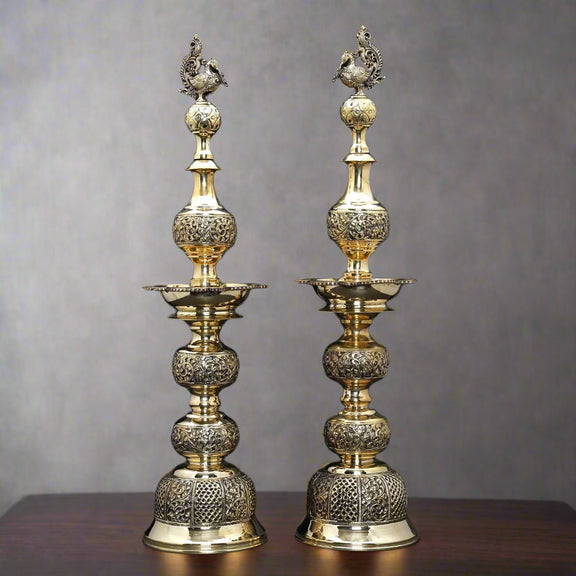 Superfine Brass Pair of Peacock Lamps (Height : 25 Inches)