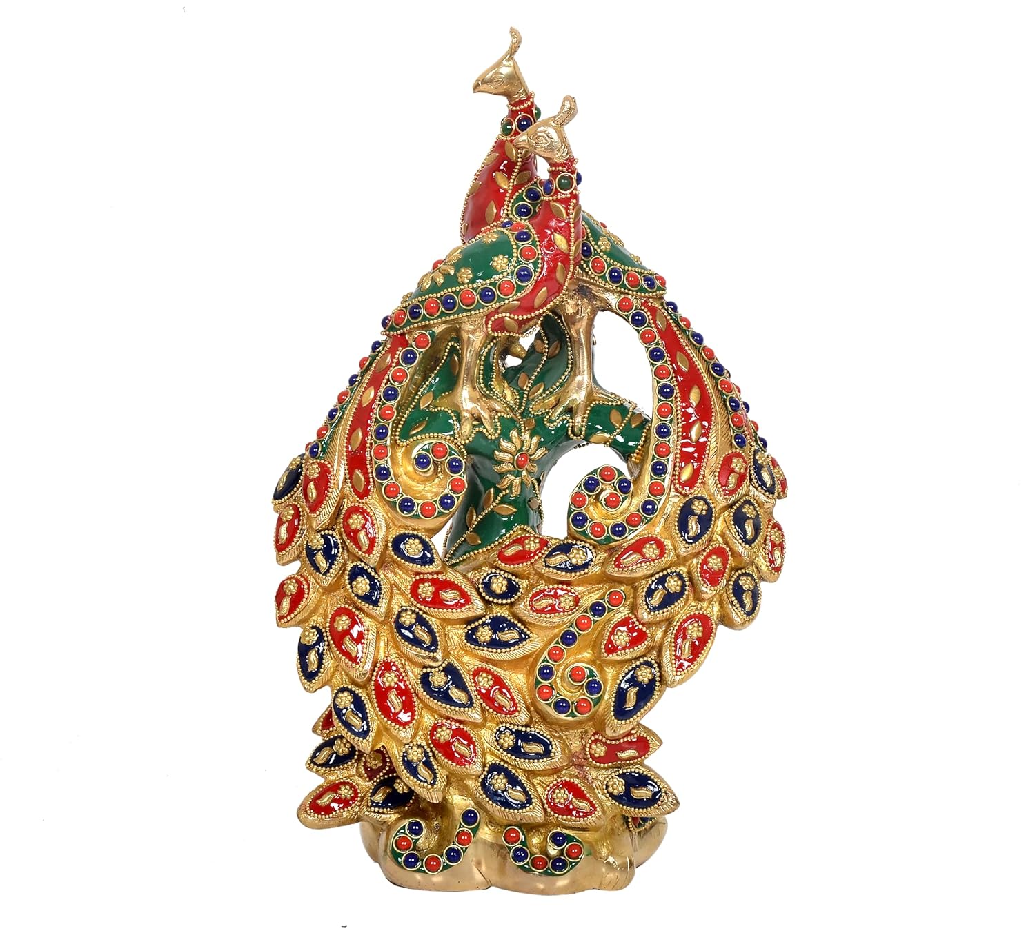Celebrate the timeless elegance of nature with this stunning brass peacock pair showpiece, each standing at 12 inches tall. Meticulously crafted from quality brass, these magnificent birds embody grace, beauty, and prosperity—cherished symbols in Indian tradition. Their intricate detailing and warm golden finish bring warmth and sophistication to any room. Whether displayed on a shelf, mantelpiece, or altar, this pair radiates charm and cultural richness, making it a treasured keepsake that honors both artistry and spiritual significance.