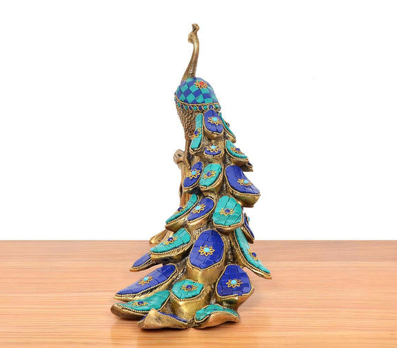 Brass Peacock with Stonework Showpiece (Height: 9 inch)