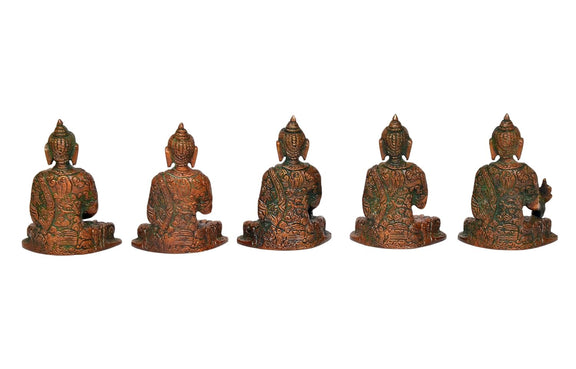 Brass Set of Five Cosmic Buddha Statues - Meditative Figurines for Spiritual Home Decor (Height : 4.5 Inch)