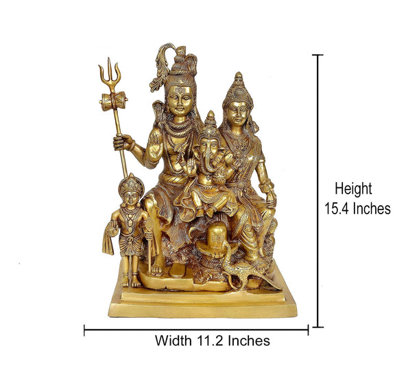 Brass Shankar Bhagwan Family Statue Mahadev, Parvati, Ganesha, Kartikeya & Nandi Murti (Height 15 Inches)