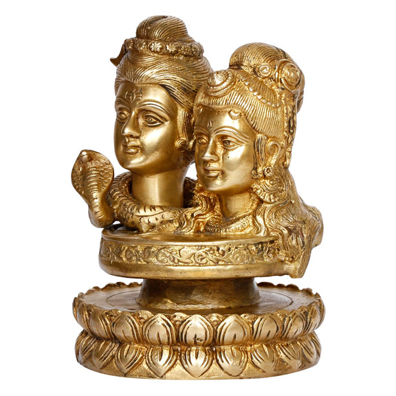 Brass Shiv Parvati Bust Artistic Idol (Height 6 Inch)