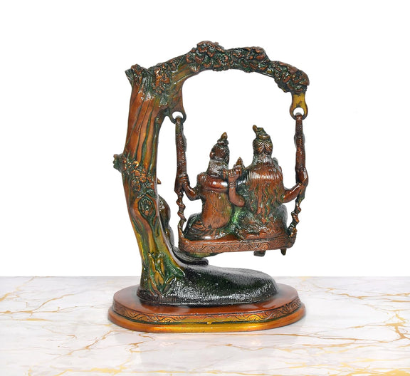 Celebrate divine love and harmony with this exquisite 10-inch brass swing featuring Lord Shiva, Goddess Parvati, and Lord Ganesha. Crafted with care, this beautiful murti set brings a serene and sacred presence to your home, inspiring devotion and peace. Perfect for your prayer space, it symbolizes family unity and spiritual blessings.