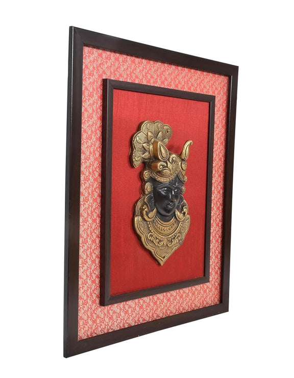Brass Shreenath ji Face Mask Idol with Frame Wall Hanging (Height 22 Inch)