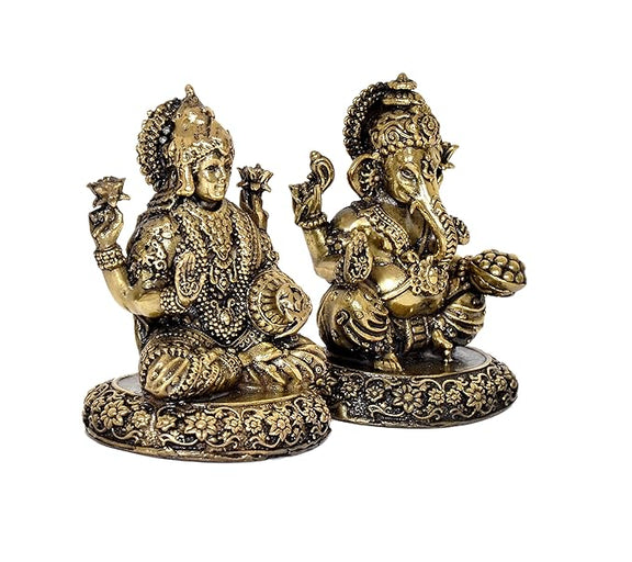 Brass Sitting Lakshmi Ganesh Idol Statue Murti for Diwali Pooja, Height : 3 inch