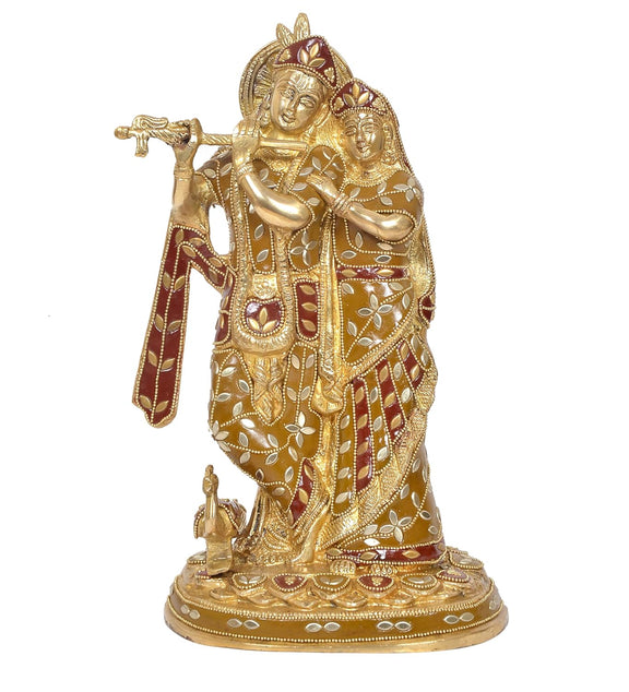 Brass Standing Radha Krishna Idol with Peacock Playing Flute (Height 12 Inches) (Multicolor 1)