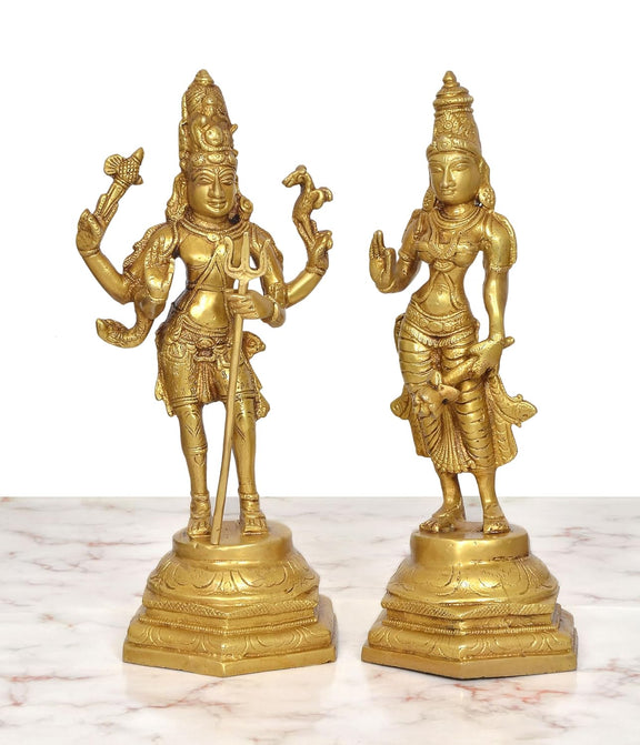 Brass Standing Shiv Parvati Statue (Height: 11 Inch)