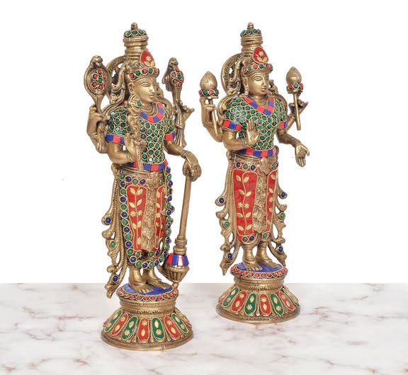 Brass Standing Vishnu Lakshmi Murti (Height: 13 inch)