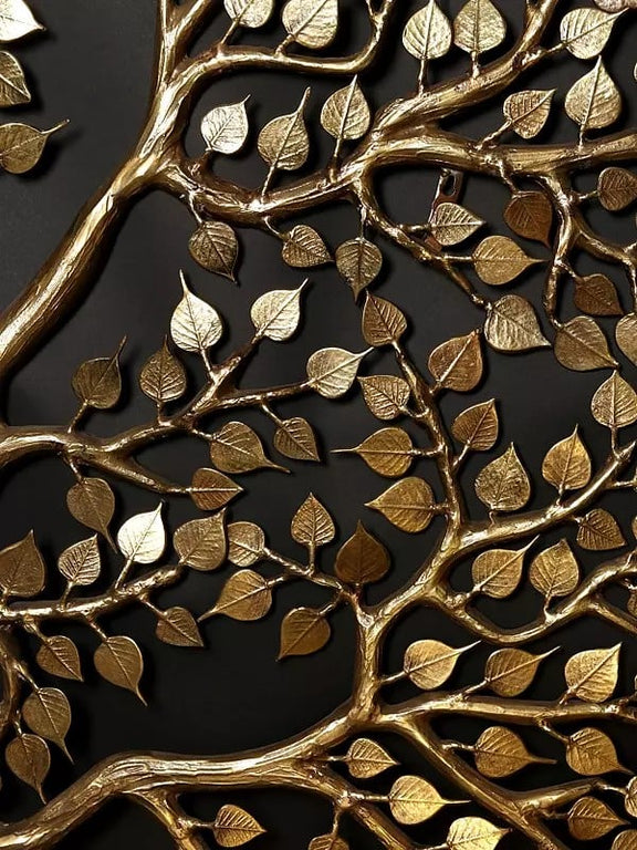 This magnificent set of four sculptures depicts a cow and calf sheltered beneath the sacred Kalpavriksha tree, adorned with delicate flowers and buds. Standing at an impressive 80 inches tall, this traditional artwork symbolizes prosperity, maternal love, and divine blessing. The detailed craftsmanship honors ancient Indian artistic traditions, making it a perfect centerpiece for temples, cultural spaces, or homes seeking to embrace spiritual heritage.
