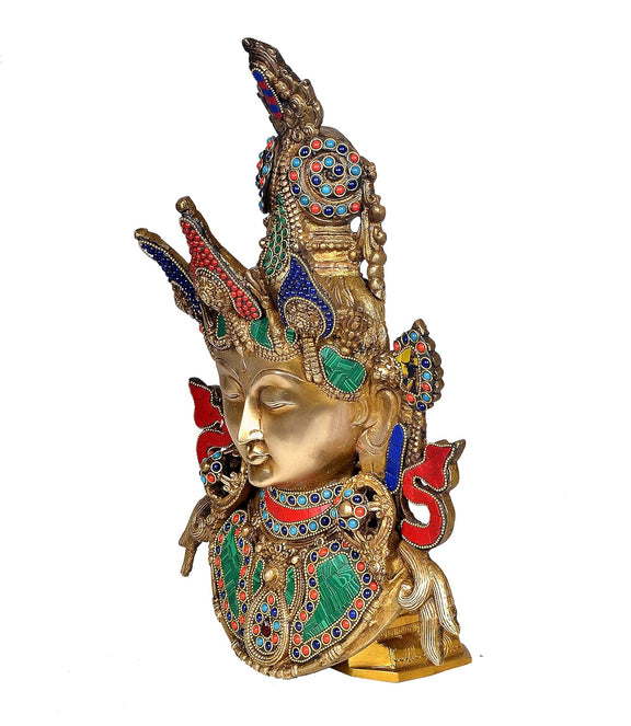 Brass Tara Devi Mask Wall Hanging Multicolour (Height 16 Inches)