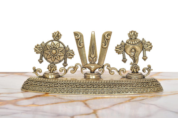 Embrace divine blessings with this exquisite Bronze Balaji Idol, a cherished representation of Lord Vishnu's grace. Standing at 3.5 inches, this beautifully crafted piece features the sacred Sanku (conch), Chakra (discus), and Namam symbol with tilak markings—symbols of protection and spiritual devotion. Perfect for your home altar or personal shrine, this bronze idol invites peace, prosperity, and celestial love into your sacred space. A timeless treasure for those seeking to deepen their spiritual connection.