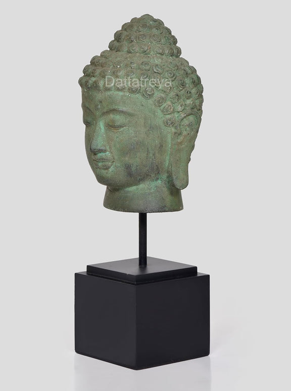 Vintage Indonesian Bronze Buddha Head on Stand Idol (Height: 14 Inches)